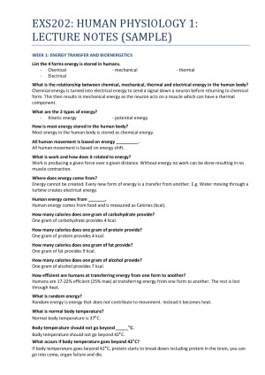These notes contain lecture, lab and required readings content for EXS202. I have also included my practical exam notes to help you with the practical component of this unit. These notes also provide illustrations and summary cards for important or complex concepts that are easier to understand when learning visually. This unit has a lot of content but my notes are written in easy to follow language and will help you understand what you need to know to do well in this unit. These notes are definitely worth buying.