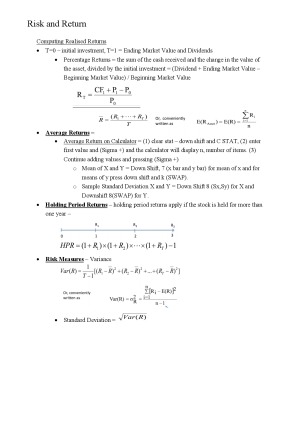 Condensed Exam revision notes for BFF2140 - covering all topics with Formulas.