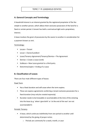 Extremely comprehensive notes & case summaries for Property A, from semester 1, 2016. Includes all relevant legal principles, exam structure and includes all of the important statutory provisions - listed and explained. Doesn't contain topic 2, 3, and 4