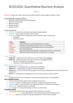 Notes drawn from workshops, lectures and textbooks. Containing all formulas in a easy to read layout! Covers weeks 1-5.