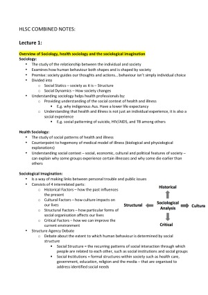 These notes were used for HLSC120 and provide detailed information about all necessary content. These notes were also used for the assignment, speech and exam. I received a High Distinction overall for the unit. These notes provide a summary of the content in each weeks lecture and tutorial and the module content.