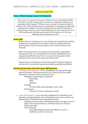 HIGH DISTINCTION NOTES FOR MMH232: Human resource development notes!