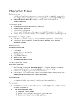 These notes include notes based on the Law lectures (7-10) which 15 marks are based on for the final exam. To pass the subject you need 40% in the law section on the final exam and these notes helped me get a HD. The notes follow the lectures with side notes and added law cases. The lectures aren't recorded so these notes are helpful if you miss out as i have attended all lectures and have explanations for some points which aren't covered in detail in the slides.