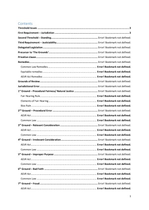 2016 Complete Administrative Law (70617) Notes Comes with complete exam notes, skeletons (including references) & an exam cheat sheet. Perfect for tutorials and lectures as the required authorities are clearly stated in these notes. These notes are set out in a form that is really easy to use in the exam. Just follow the structure of these notes as I did in my exam and you should be fine. Other Notes Available: * Evidence Law * Equity & Trusts * Torts * Contracts * Australian Constitutional Law * Criminal Law & Evidence * Remedies
