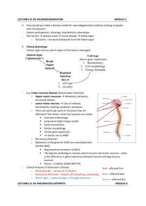 Comprehensive notes with detailed summaries on the "Neurodegeneration" and "Rheumatoid Arthritis" modules. Perfect for exam revision or for revision during the semester. Only covers module 5&6