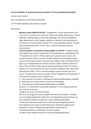 Notes that encapsulate the entire unit of Contracts at Macquarie University. Does not include tutorial excercises, but includes every word spoken in Lectures A and B from week 3 onwards (which is what is required in the final exam). These notes took me from a high credit average to a 37/40 in the final exam!