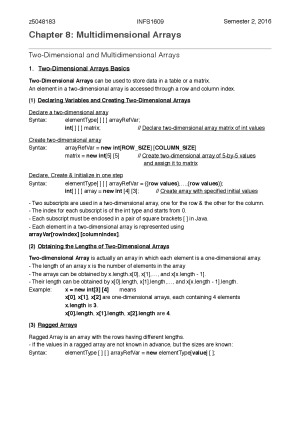 - Comprehensive notes for INFS1609 which will help you achieve HD in fortnightly quizzes and the final exam. - Readily available as a reference when you do coding. - Only the necessary details extracted from hundreds of pages from the textbook and compiled into just 41 pages.
