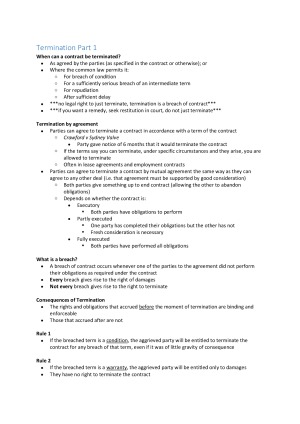 Advanced Contract Law Notes of all content covered in the subject (LAW2527). Well laid out by topic with plenty of examples. Case law and legislation included for each topic. Great for taking into the exam for easy reference.