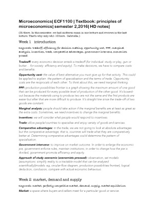 I got HD in micro this semester (sem 2,2016) and here are my notes. It may help both in previewing (know the structure quickly) and reviewing (prepare for final exam). Hope all you guys get HD in your units.