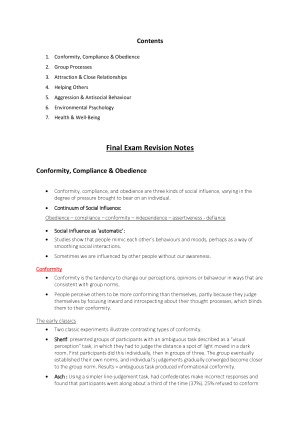 Extremely detailed notes for the final exam, I received a 92% on the exam using these notes. The subheadings in red were the topics for our short answer and essay answer questions (however they probably wont use the same topics each semester as the basis for the short answer and essay responses). Good luck, I hope you put these notes to good use!!!
