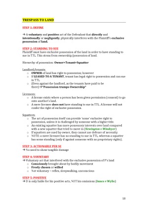 These notes are really easy to use and made my exam a really simple, step-by-step process. Torts is all about structure. My notes go through each step of each tort, as you should answer in an exam.
