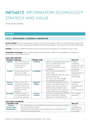 Subject notes for USYD INFO6012