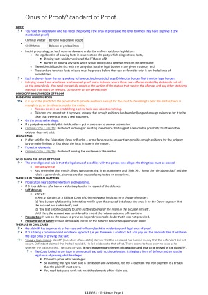 - Each Section is separated out with headings. - Written in dot points. - Easy to understand - Summary of the whole unit and textbook. - Elements and steps needed to answer the question stated clearly. - The authorities for elements and (where necessary) the facts of these authorities are stated. - The notes on the following topic: > Relevance & Similar Facts > Presumption, Prima Facie Case, No case to Answer > Onus of Proof/Standard of Proof > Judicial Notice and Formal Admission > Competence and Compellability > Privilege > Trial and Witness > Hostile and Unfavoutable Witness > Documet Evidence > Demonstrative and Real Evidence > Hearsay and Exceptions > Opinion Evidence and Expert Evidence > Confession and Admissions > Illegally Obtained Evidence > ID
