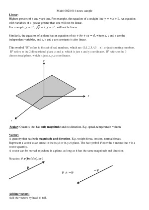 These notes summarise the math1014 introduction to linear algebra course, offered in semester 2. These notes can also be used for math1002 linear algebra, which is offered in semester 1