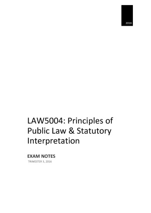Exam notes made during trimester 3 of LAW5004 Public Law and Statutory Interpretation and used in exam. - Parliament - Executive - Judiciary - Statutory Interpretation