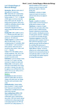 A collaboration of notes I summarised and condensed into 'BMS2062 Lecture Summaries' using information obtained from the semester's lecture slides, the lecturer's spoken notes and textbooks. The aim of this lecture summary series was to condense one weeks lecture material onto one A4 piece of paper. Hence, you may see some differences in spacing. Later on, as the subjects advance, one weeks material will not be able to fit on one page so will extend onto a second (but not a third). Green bolded text represents lecture objectives, normal green text is something especially important to remember, and the rest is blue because it's important to be original. These notes were my main form of studying for the final exam, helping me achieve a high distinction of 86.