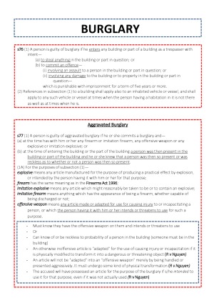 These notes have divided up each element of each offence and detailed what is necessary to satisfy each one. It is especially useful as a quick reference during exams.
