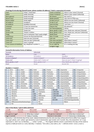All vocabulary, tips & content of Italian 1 in tables & easy-to-view formatting.