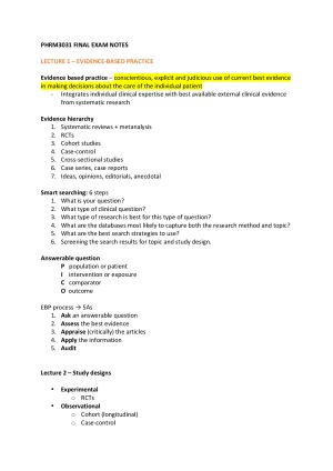 This collection of notes contains examinable material from all of the lectures in PHRM3031. These notes will make it easier to study this subject as it only contains important information and concepts in a much more precise and easier way than the lecture notes present it (such as all the different types of studies).