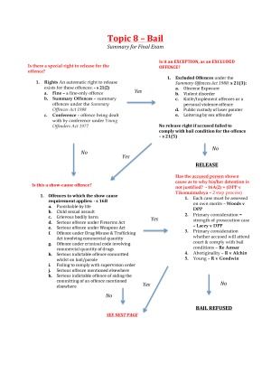 Extremely well-structured, easy to follow, exam ready CCP notes that will ensure a great mark in the final exam. Some of the great features of these notes include: - Most up to date content of CCP course content (including new 2014 Bail Laws). - Several easy to follow problem question scaffolds (as seen in the preview). - Additional material for the criminal procedure essay component of the final exam. - Extremely detailed, yet succinct and well-organised structure.