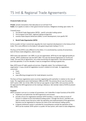 Simple easy to follow exam notes for International Commercial Law. Very comprehensive and written in plain english- this is all I used for the exam and scored a HD. Contains: T1 Introduction to Int Comm Law T3 International Carriage of Goods T4 Letters of Credit T5 Intl & Regional Trade Agreements T6 Foreign Investment Law T7 Intl Dispute Resolution T8 Current issues in Intl Law A T9 Current Issues in Intl Comm Law B