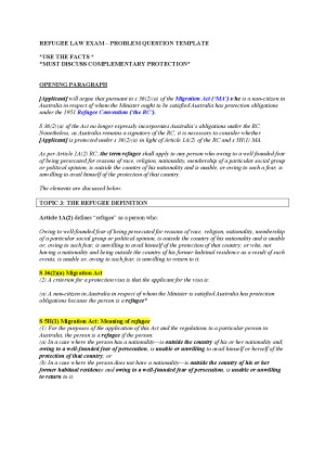 Clear and concise notes that go through exactly how to determine whether an individual should be granted refugee status. It is effectively a template that can be applied to any problem question. VERY EASY TO UNDERSTAND. Got me through the exam.
