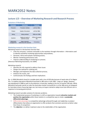 Comprehensive HD Marketing Research notes that incorporates both weekly lecture content and textbook material. Key words highlighted in red that lecturer stated as testable exam content.