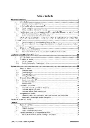 These LAW2112 notes were formulated for use in the Property Law A exam (which is open-book). The notes are detailed, with all of the relevant ideas and case examples for each topic. They were a useful reference in my exam, as they are constructed with answering problem questions in mind. Using these notes, I received a High Distinction.