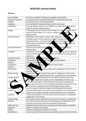 Summary notes topic-by-topic with all essential information needed for the for the NURS1201 exam.