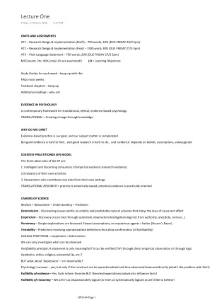 Complete lecture and seminar notes from Foundations of Psychological Science at Deakin