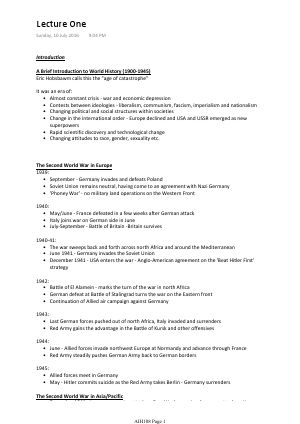 Complete lecture and seminar notes for AIH108 (1945-1991) at Deakin