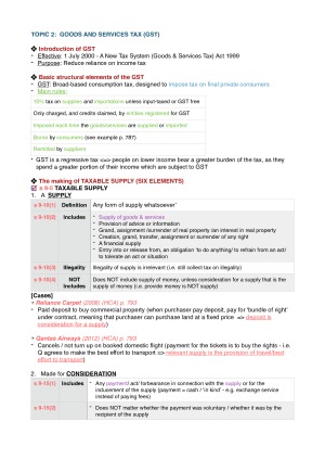 This note has summarised the key points from textbook and lectures. Important contents & cases are highlighted / coloured. Very handy to use in exam condition and it covers basically everything you need to know in the course :)