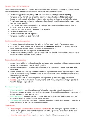 These notes summarise each topic taught in ACC3100 and will be really helpful in studying for the end of semester exam! Topics Included: - Conceptual Framework - Australian Accounting Standard Setting - Regulation - Accounting Theories and Research - Sustainability and Integrated Reporting - Corporate Governance - Measurement - Extractive Industries: Exploration and Evaluation - Leases - Revenue Recognition: Long Term Construction Contracts - Convertible Notes and Foreign Currency Transactions - Derivatives - Intangible Assets - Earnings Management