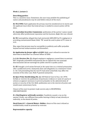 These notes helped me to achieve a Distinction in MLL391 Civil Procedure. Comprised of crucial detail from the lectures, tutorials, study guide and beyond, these notes are an invaluable resource come exam time due to their succinct nature. These notes cover examinable content from week 1 through to week 10. Only relevant details have been included for your benefit- excessive verbiage has been removed.