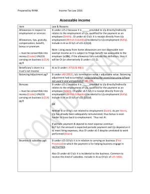 Income tax law is an intensive course, BUT the good news is you do not need to memorise any of the law because it is open book exam. In order to score a high marks in the exam, you just need a good set of pre-written answer for each of the possible tax item (In fact, you don't really need to understand the course, just COPY in the exam, as long as you know ABC). I actually scored 95 for the written exam. This set of notes will really save you for Q1 & Q2, which you will be able to pass even if you don't understand the course. P/s: Page number referenced in the notes are refers to my 2016 income tax notes, for those who aim for HD, I'd recommend you to get that set of notes as well. Notes only contain 'Accessible Income' and 'Deductions'