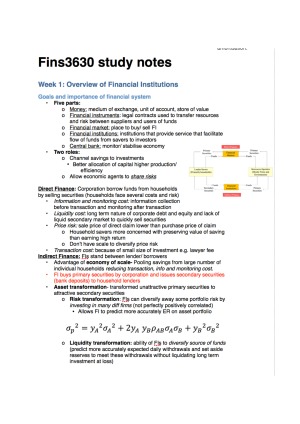 Full course notes for Fins3630: Bank Financial Management. Completed Semester 2 2016. Final mark of 87 with a mark of 86% on the final exam.
