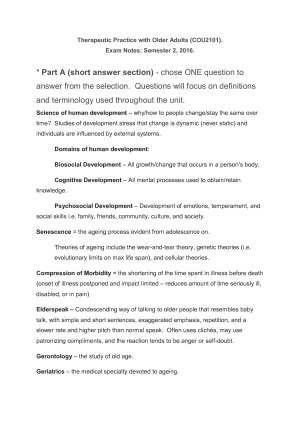 Semester 2, 2016 COU2101 Exam Notes. Written with exam format in mind - combination of short answer questions and essay questions. Core subject material is revised through and key terms defined.