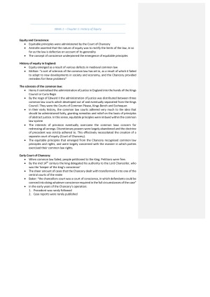 Highly detailed and supremely organised course notes for all topics covered in Equity & Trusts unit at Macquarie University. They feature a combination of lecture notes and textbook material. They feature: - helpful headings for organisation - summaries for exams and hypothetical problems I achieved a Distinction for this course.