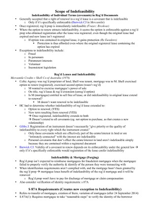 Detailed notes including case summaries, tables and easily understood summaries on the following topics: indefeasibility and its exceptions including fraud, unregistered interests and caveats, equitable interests including resulting trusts, constructive trusts and estoppel, priority disputes, and co-ownership.