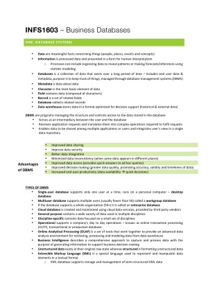 INFS1603 Final Notes & SQL Summary!