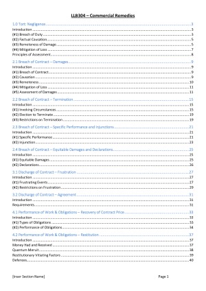 Notes completed by student with 6.88 GPA, with all current content - perfect for exam. Comprehensive, detailed and logical notes covering the entire Commercial Remedies unit. Notes are arranged according to topic, with clear headings and introductory paragraphs with preliminary information including problem-solving instructions tailored to each topic. Case summaries are included and linked to relevant areas of the notes, including catchwords for quick and easy reference in the exam.
