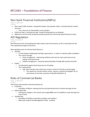 These notes breaks down all the concepts required for BFC1001, into easy to understand and manageable chunks. Targeted towards those who have trouble learning difficult concepts, this set of comprehensive notes guides you through each step, and ultimately delivers a rich understanding of the topic needed in order to achieve that elusive HD!