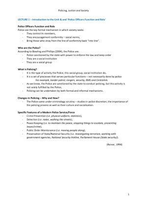 102318: Policing, Justice and Society Distinction Lecture Notes