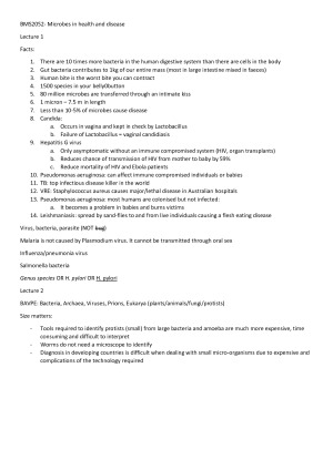 Comprehensive 164 page document listing ALL information provided by the lecturer and lecture slides with lecture references for all information and lecture objectives clearly laid out. The lecture objectives are clearly answered throughout the notes and draw upon all information supplied by the lecturer and lecture slides as well as external resourses such as ncbi and textbooks.