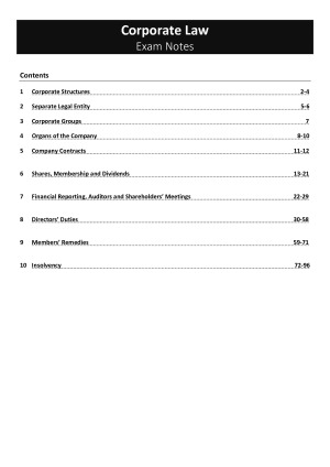 These are the notes that I prepared for my final examination. They briefly cover the foundational topics (e.g., business structures) and provide comprehensive processes for the later topics (e.g., directors' duties, members' remedies, insolvency).