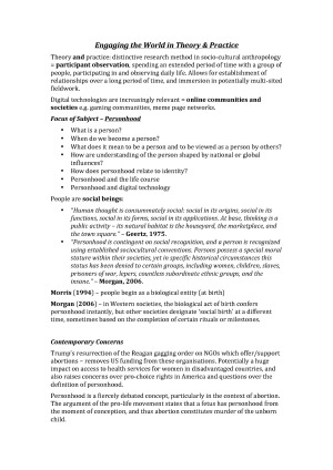 Full lecture summaries for ANTH 20012: Engaging the World in Theory and Practice. Using these notes, I achieved a mark of 82 (H1 grade).
