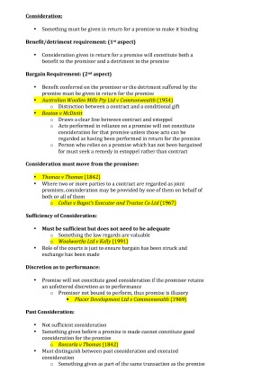 Highly accurate, detailed & organised Contracts 1 notes. Topics include: Consideration, Intention to create legal relations, Preliminary agreements, capacity, estoppel & vitiating factors. Using these BLB1102 Contracts 1 notes I received a 78.