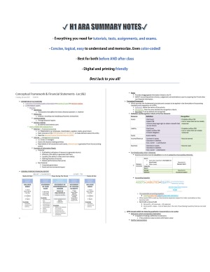✔ H1 ARA SUMMARY NOTES✔ (Note: The sample is just thumbnails for preview, the actual note is in full size! :) - Everything you need for tutorials, tests, assignments, and exams. - Concise, logical, easy to understand and memorize. Even color-coded! - Best for both before AND after class - Digital and printing friendly Tips: Read the notes before lectures, mark anything not understood, listen carefully to lectures (lots of information in the 2-hour lectures to comprehend), then review the notes ASAP after lectures. Try to fully understand and memorize everything of the week, do not leave to the end! Best luck to you all!
