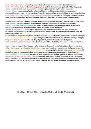 -Includes summary of all examinable case studies -Case studies are listed in alphabetical order and colour coded into different topics -Also has a short summary of all examinable Australian Consumer Law