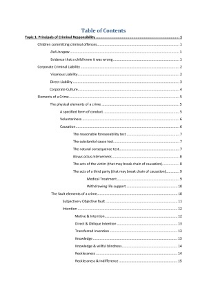 LAW10004 - Australian Criminal Law II notes. These are VERY comprehensive study notes which summaries the entire subject with references to everything - it is in the same order as the study guide A detailed Table of Contents is provided at the beginning (along with page numbers) to help you find what you are looking for - perfect for the exam as it helps you save SO much time. My notes are colour code referenced like all my other notes Green - legislation Grey - cases Pink - reference to the textbook Red - reference to the study guide Yellow - reference to the activity Qs This is an absolute bargain for the price you pay. If you prefer not to have the notes colour coded please shoot me a message & I will send you a non-highlighted version in pdf for no extra cost